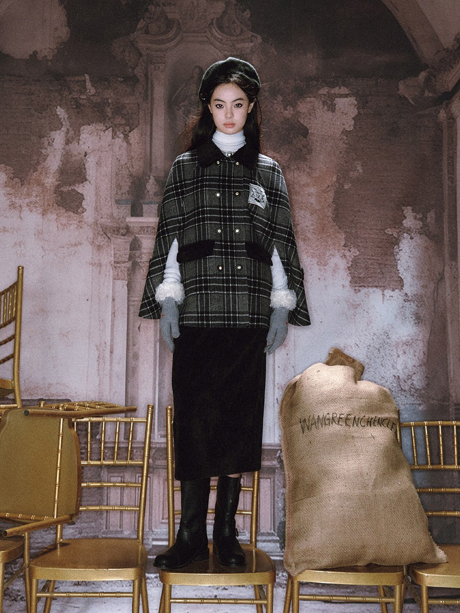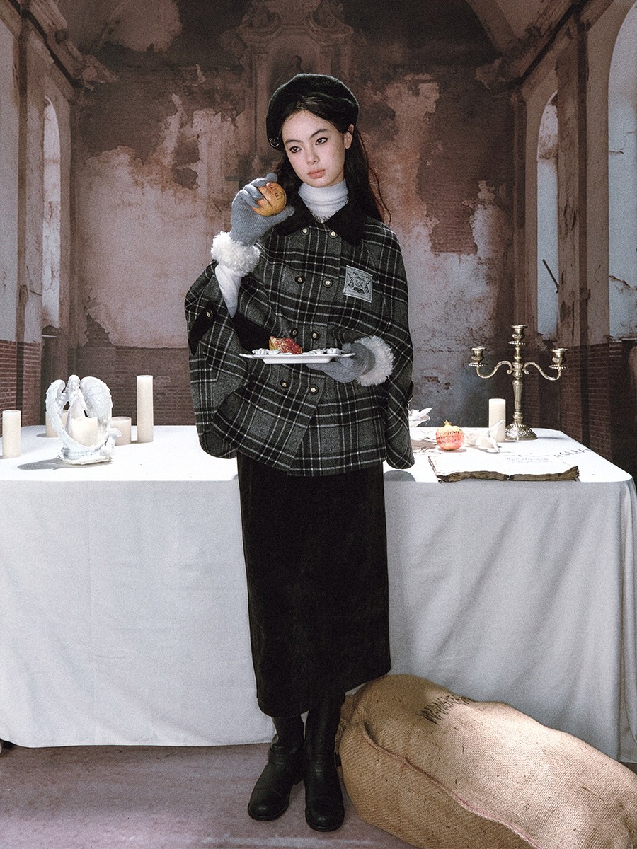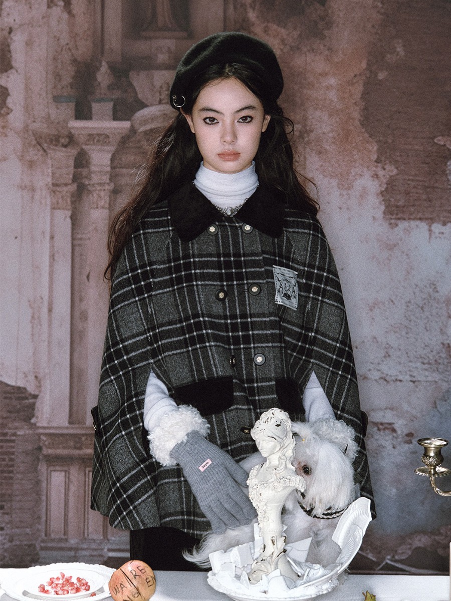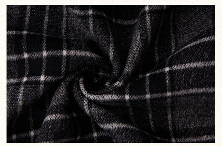 Texture: Soft brushed wool blend with plaid pattern